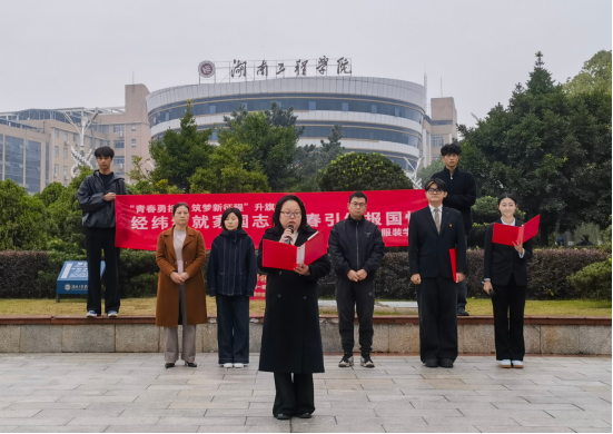 10月27日清晨,纺织服装学院在知行广场隆重举行“经纬织就家国志,青春引线报国情”主题升旗仪式。学院党委副书记赵玲令、全体辅导员、学生党员、学生干部及2025级全体新生共同参加。