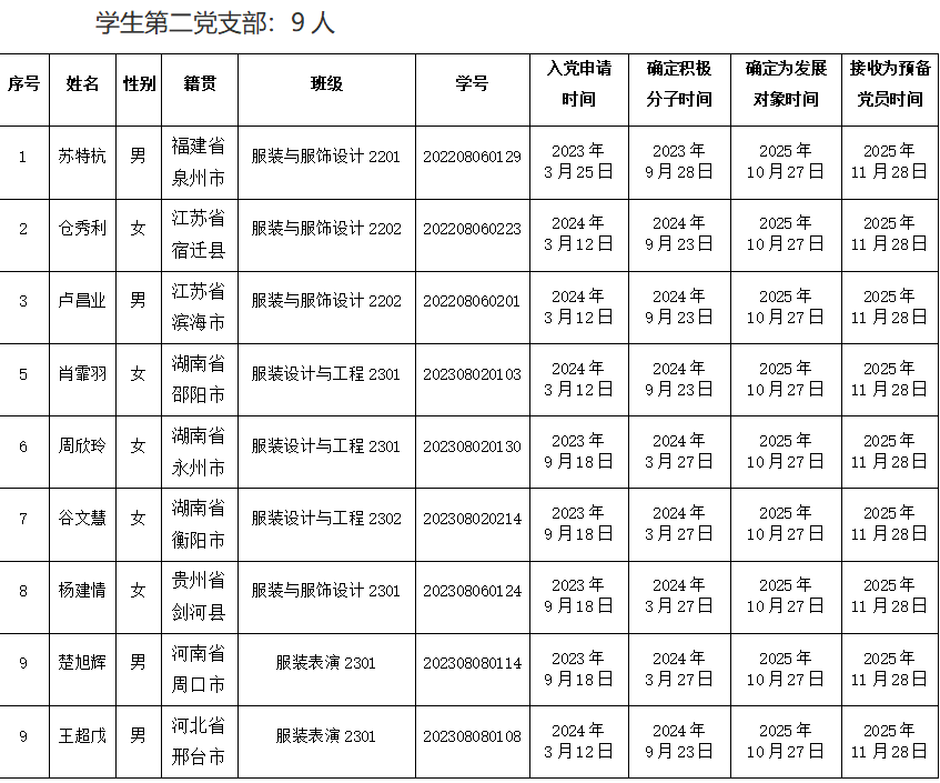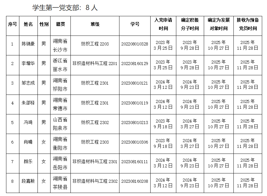 根据《中国共产党章程》《中国共产党发展党员工作细则》及《中共湖南工程学院委员会发展党员工作实施细则》的规定,支部委员会对拟接收预备党员进行了严格审查,经集体讨论、学院党委审查、校党委预审和党支部大会讨论决议,接收陈锦豪、苏特杭等17名同志为预备党员。现将有关情况公示如下:
