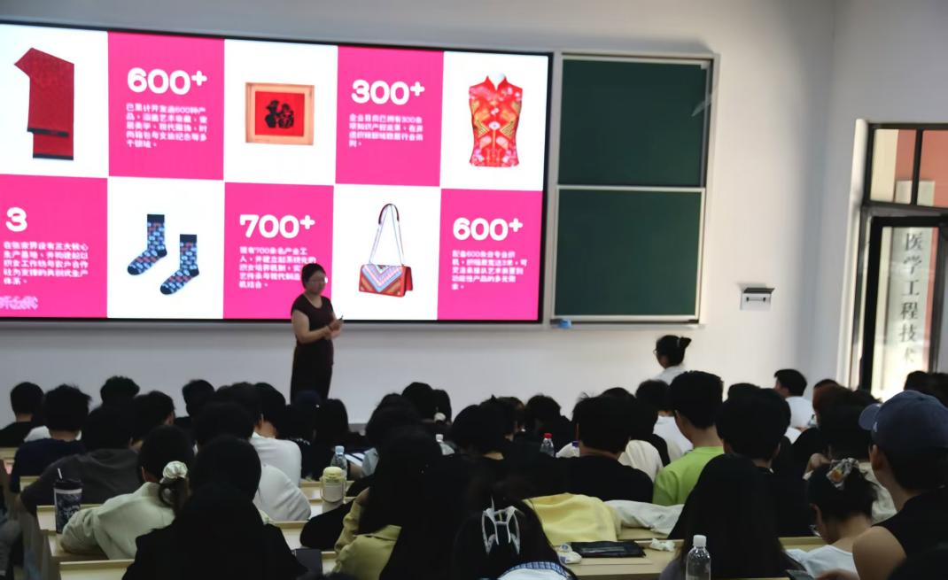 在互动环节,张甜甜围绕非遗品牌打造、产品设计转化、创业路径选择等问题,与现场学生进行了深入交流。同学们纷纷表示,讲座不仅拓宽了专业视野,更激发了投身传统文化创造性转化与创新性发展的创业热情。