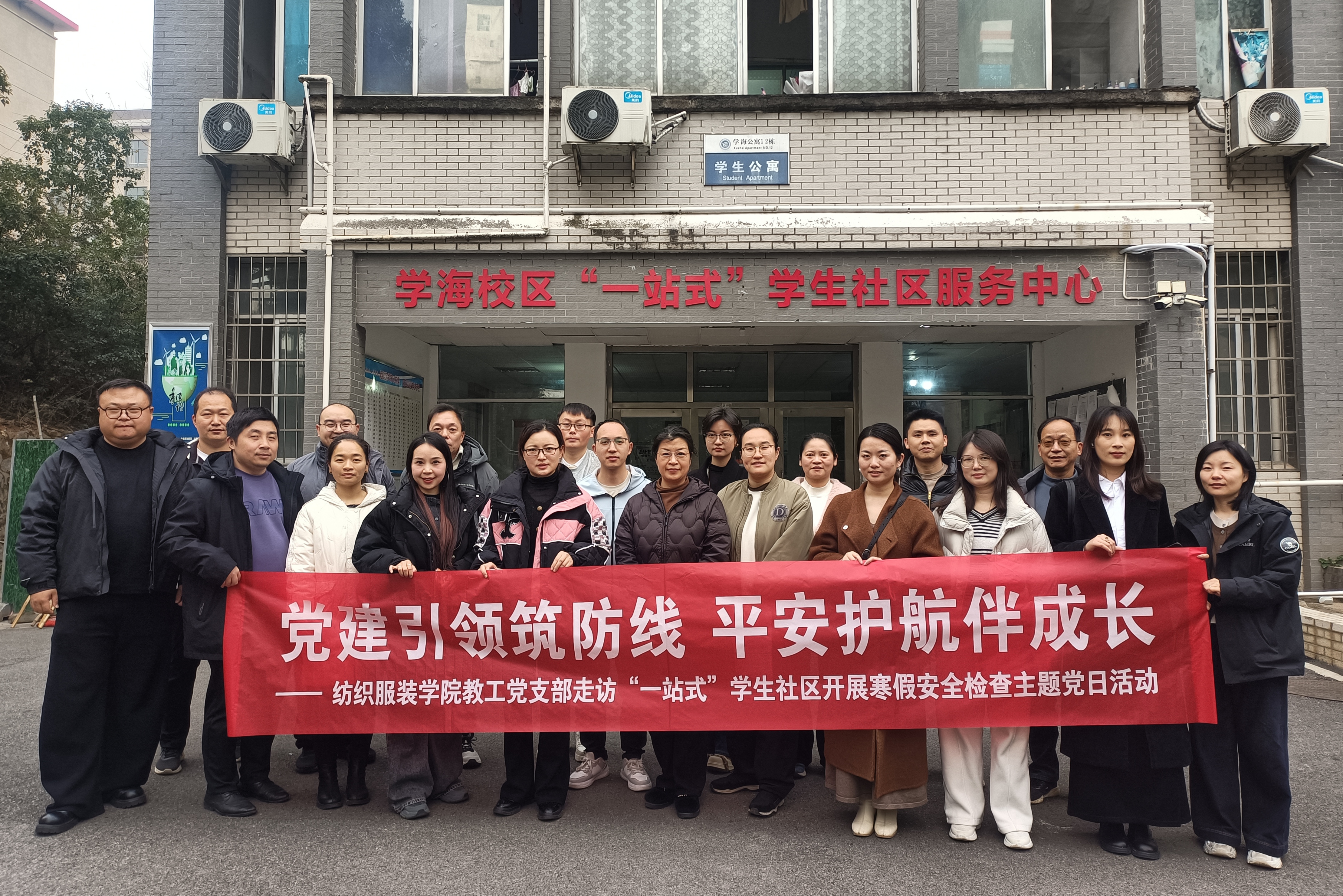 随着寒假临近,为确保学生安全离校、平安返乡,1月16日,纺织服装学院组织教工党员与班主任,深入学海校区“一站式”学生社区服务中心,联合开展“党建引领筑防线 平安护航伴成长”主题党日活动,全面排查宿舍安全隐患,细致落实学生离校安排。