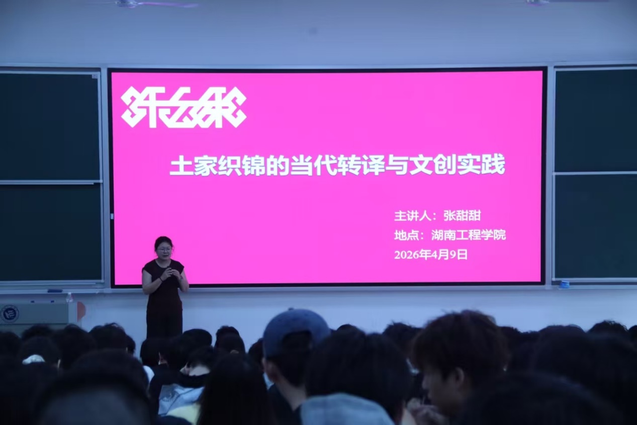 4月9日,纺织工程系特邀张家界乖幺妹土家织锦开发有限公司总经理张甜甜,为纺织工程专业2023级学生带来了"土家织锦的当代转译与文创实践"的讲座。